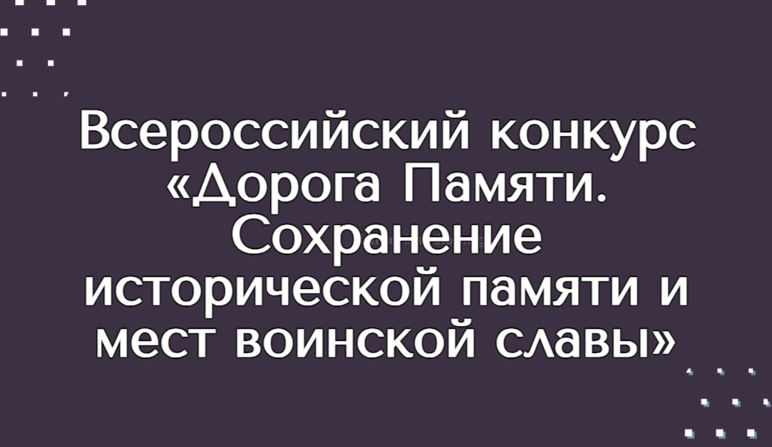 Всероссийский конкурс «Дорога Памяти. Сохранение исторической памяти имест воинской славы»